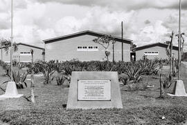 Fotografia em preto e branco em formato paisagem. Hospital do Instituto dos Industriários (Instituto de Aposentadorias e Pensões dos Industriários – IAPI). Em primeiro plano a placa comemorativa da inauguração do hospital, colocada no canteiro que antecede a fachada do hospital. Escrito na fachada do prédio: Instituto dos Industriários Assistência Médica. Pessoas estão na porta do Ambulatório (bloco da direita). A madeira é o elemento utilizado para a construção do hospital. Conforme o croqui publicado na revista Brasília (Novacap, n. 2, p. 12) O hospital possui a área total de 1.265,30 m2, distribuídos da seguinte maneira: no bloco central estava a Administração (308,30 m2), a Hospitalização (438,00 m2) e o Centro Cirúrgico (150,50 m2); no bloco do lado direito o Ambulatório (185,60 m2); e no bloco do lado esquerdo os Serviços Gerais (182.90 m2). Os engenheiros responsáveis pela direção da obra: Vicente Pais Barreto e Marcelo Colares Moacir. Destinado a atender aos trabalhadores envolvidos na construção de Brasília. O hospital foi inaugurado no dia 21 de junho de 1957 pelo presidente de Portugal general Craveiro Lopes. No entanto, foi reinaugurado quase um mês depois, no dia 6 de julho, com o nome de Hospital Juscelino Kubitschek, conforme publicado na revista Brasília (Novacap, n. 7, p. 16). Presentes ao evento estavam dirigentes da Novacap, médicos que participaram da intitulada “Primeira Reunião Científica de Brasília” e vereadores cariocas. De acordo com o artigo da revista citada, o hospital de madeira foi construído em apenas cinco meses de trabalho e aparelhado com modernos equipamentos. Com capacidade de atendimento para cinquenta leitos, possui duas salas de operações, dois apartamentos, aparelhos de raios-X, laboratório para exames, ambulatório, sala de ortopedia, maternidade, berçário, farmácia, gabinete dentário entre outras estruturas necessárias ao atendimento. Atualmente, o local é o Museu Vivo da Memória Candanga, localiza-se no Núcleo Bandeirante.