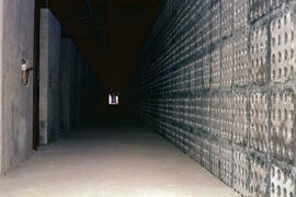"Fotografia colorida no formato paisagem, retrata o corredor de acesso aos quartos do Brasília Palace Hotel, em construção entre os anos de 1957 a 1960, em Brasília-DF. O hotel foi projetado em 1956 pelo arquiteto e urbanista Oscar Niemeyer (1907-2012), sob direção da NOVACAP (Companhia Urbanizadora da Nova Capital do Brasil). Apenas com o reboco e em fase de acabamento, um grande corredor tendo ao seu lado esquerdo as aberturas de acesso aos quartos, e duas aberturas em altura intermediária contendo pedaços de papelão no seu interior, ao lado direito cobogós vazados com dezesseis furos cada peça permitindo a passagem de luz solar e ventilação natural. Lajeamento sem forro com fios pendurados sobre treliças. O edifício foi inaugurado juntamente com o Palácio da Alvorada em 30/06/1958, o Brasília Palace Hotel se tornou cenário de grandes eventos, espaço de confraternização e convivência dos pioneiros, gente da alta sociedade, políticos, embaixadores e dos servidores vindos de outros pontos do país, que se encontravam nos bailes e festas. Em toda a sua história, hospedou desde importantes figuras políticas à celebridades, como: a Rainha Elizabeth II (1926-2022), Fidel Castro (1926-2016), Gisele Bündchen (1980-), Caetano Veloso (1942-) e Tom Jobim (1927-1994). Em 1978, o edifício foi inutilizado após um incêndio causado por uma cafeteira esquecida na tomada, sua reconstrução foi concluída no ano de 2007, com a entrega da restauração das obras de autoria de Athos Bulcão (1918-2008). Após o incêndio acidental no terceiro andar do bloco principal, a configuração original do prédio foi alterada com a adição de duas torres de escadas e elevadores na fachada frontal, brises-soleil em lâminas e grandes painéis de vidro ao invés do antigo cobogó, além de varandas e peitoris de alvenaria na fachada posterior (voltada para o bloco térreo).