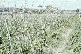 linhas de plantio. Junto a cada planta são fincadas estacas de madeira ou bambu, amarradas ao arame. Nesse caso, as plantas ficam inclinadas." (p. 32)¹